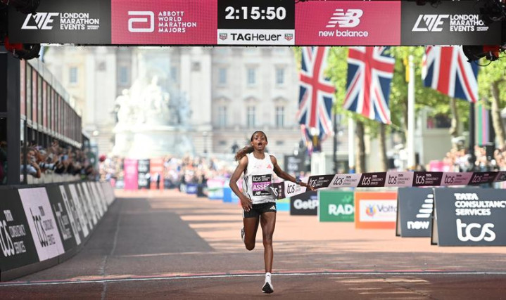 埃塞俄比亚女将阿塞法27日在伦敦马拉松赛上夺金,同时以2小时15分50秒的成绩刷新纯女子世界纪录。